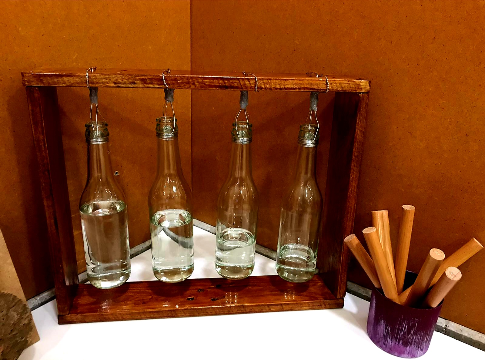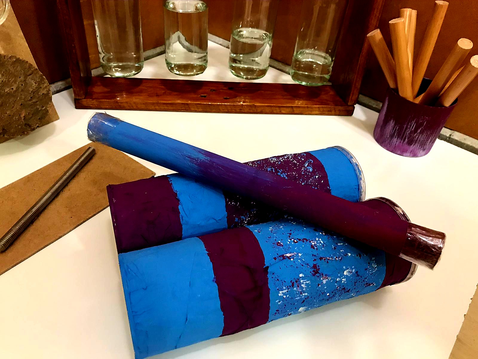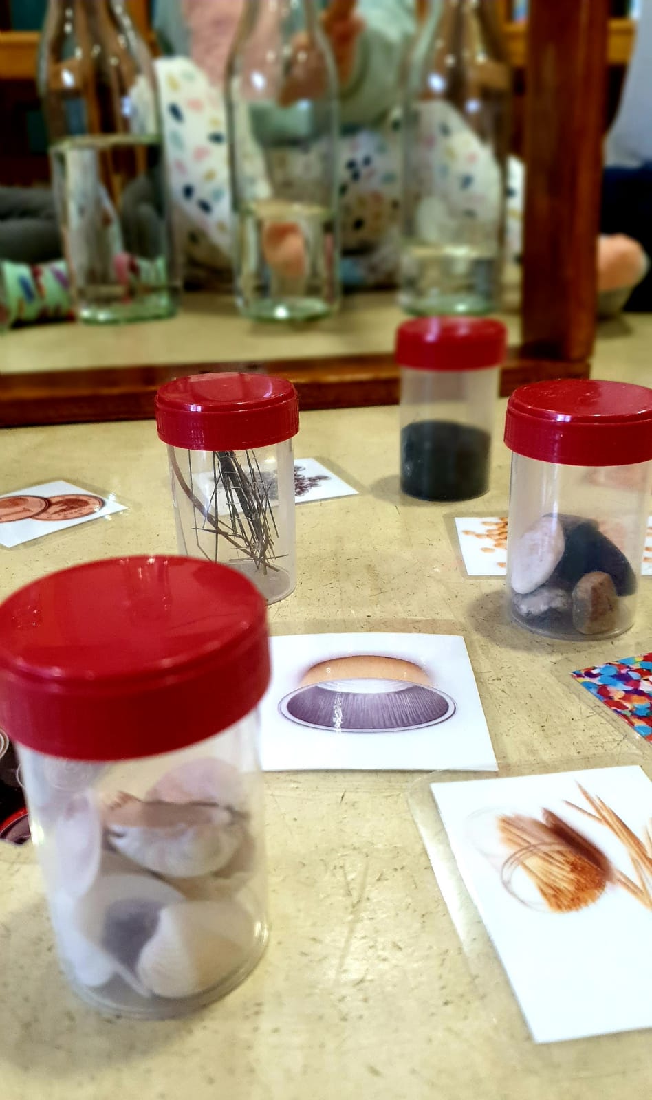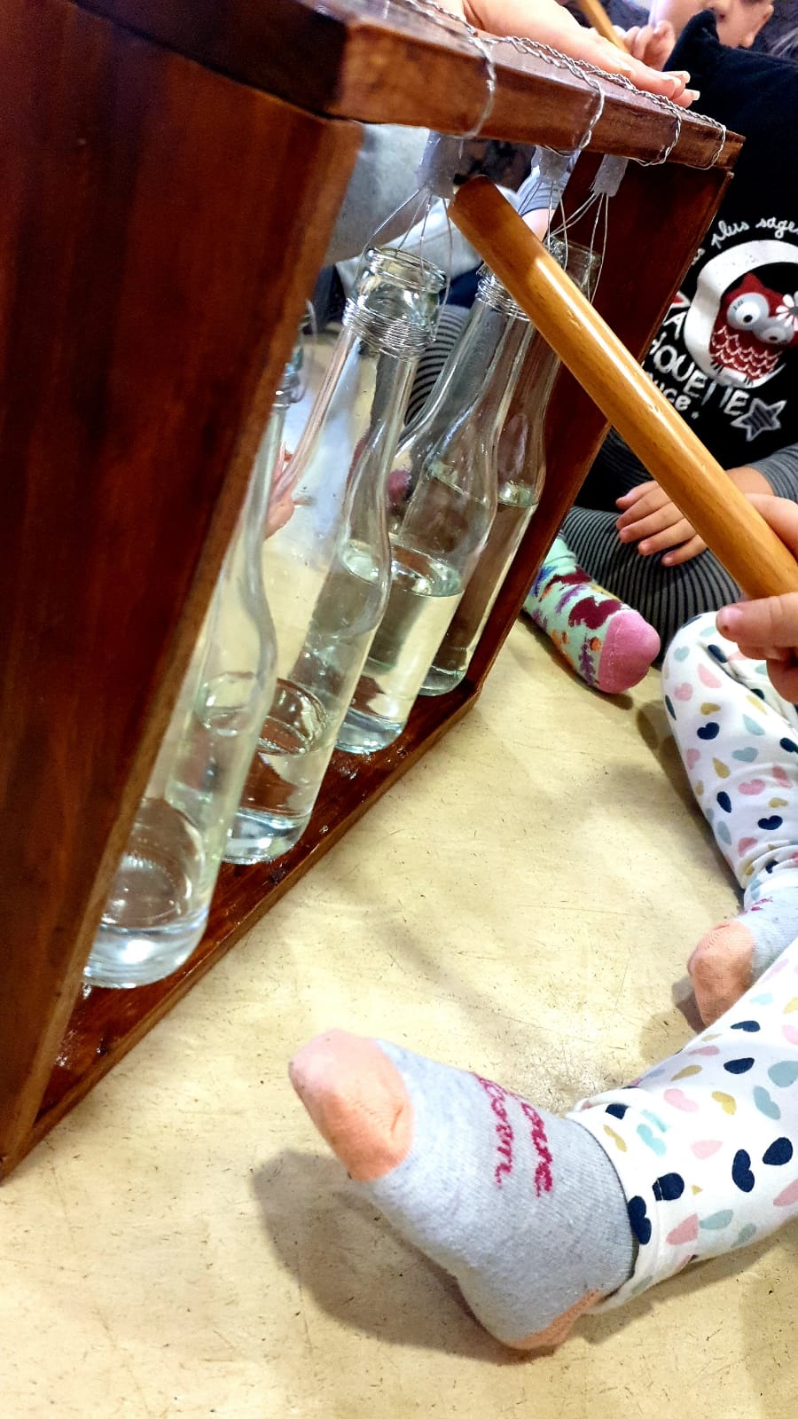 Racó fet amb materials naturals i materials reciclats. Treballem conceptes com el ritme, sons, sorolls, fort, fluix…estimulació auditiva amb materials quotidians