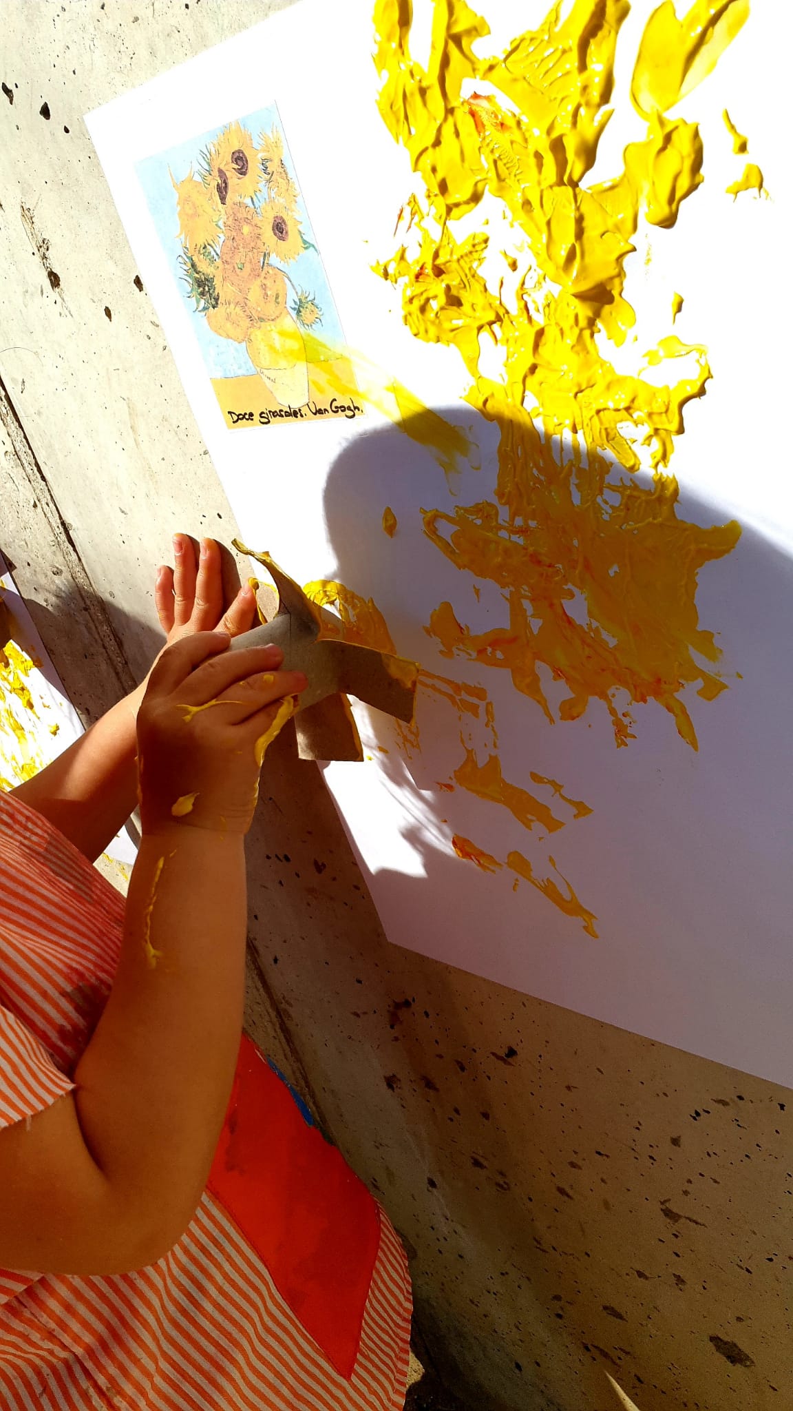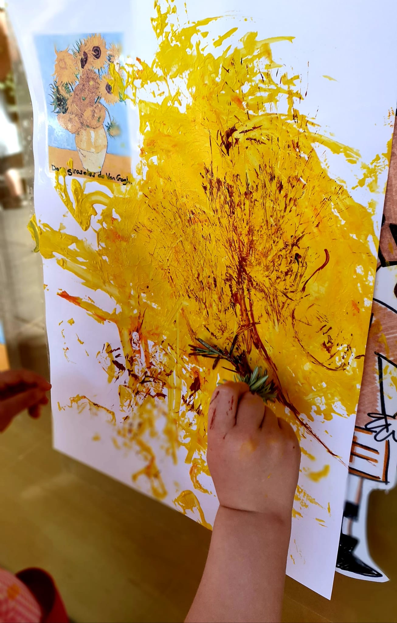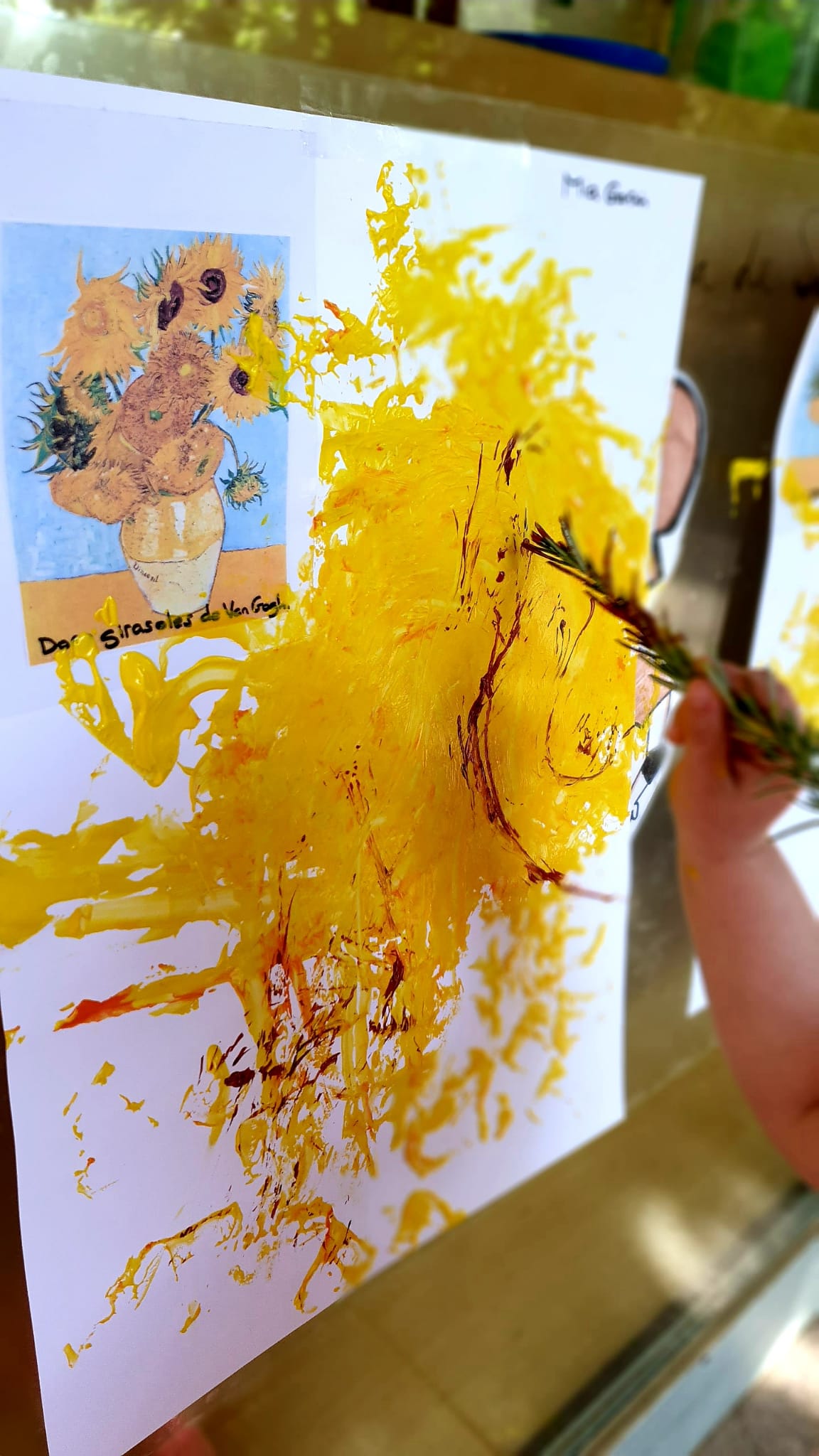 A l’escola bressol treballem aspectes com la creativitat i la imaginació, sempre lligades amb les emocions dels infants. Reinterpretem un quadre de Van Gogh a la nostra manera, utilitzant materials naturals com el romaní i materials reciclats com rotllos de cartró. Una proposta creativa, relaxant, potenciant la motricitat fina, estimulant els sentits i afavorint un desenvolupament integral de l’infant, donant valor als nostres espais exteriors per fer més enriquidores les propostes i l’aprenentatge.
