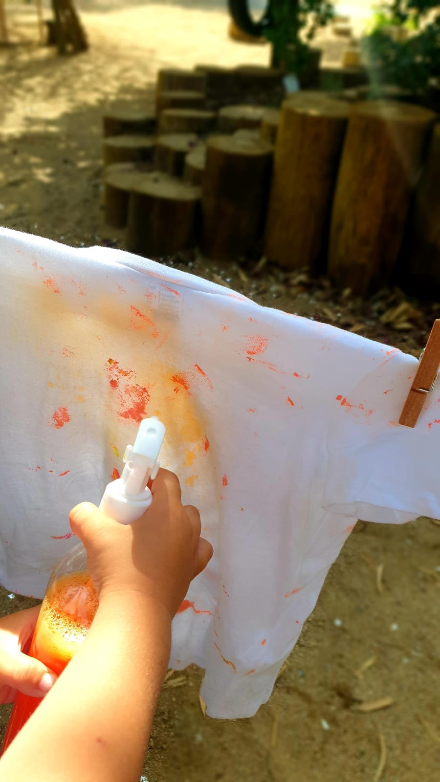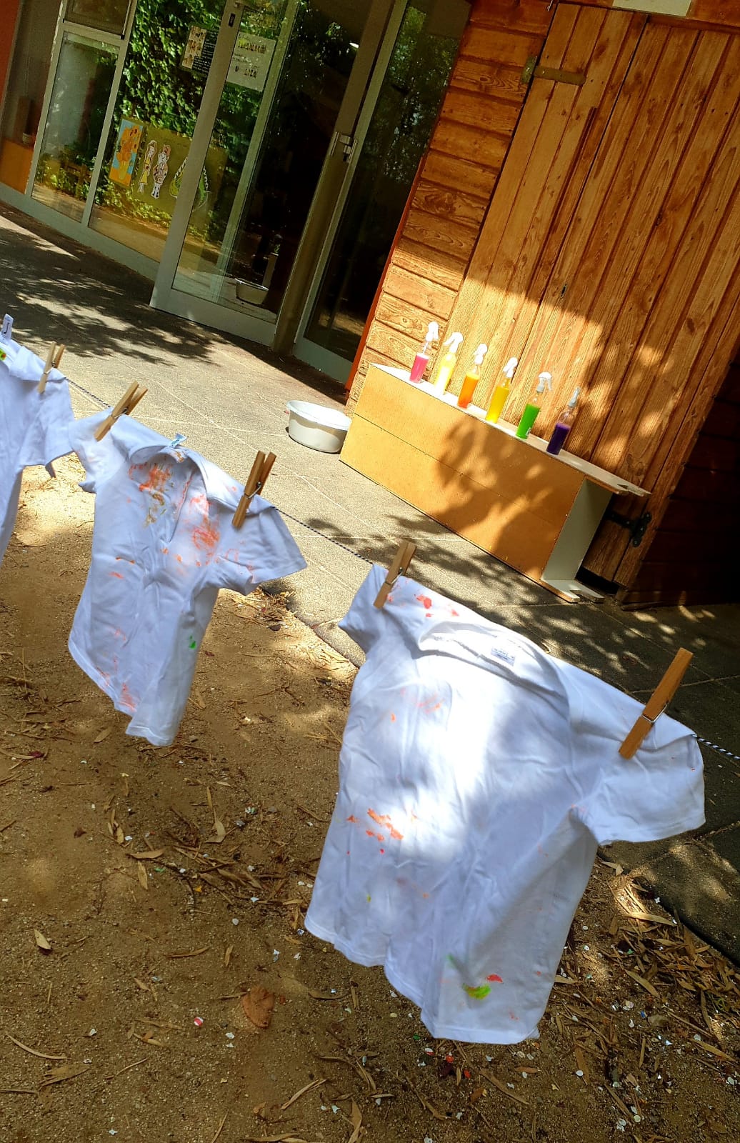 Avui els més grans dels Gallarets, pintem samarretes als espais exteriors utilitzant esprais, aigua i pintura de roba. Fem propostes creatives, experimentació, exploració i descoberta, que potencien el desenvolupament integral i dels nostres infants.