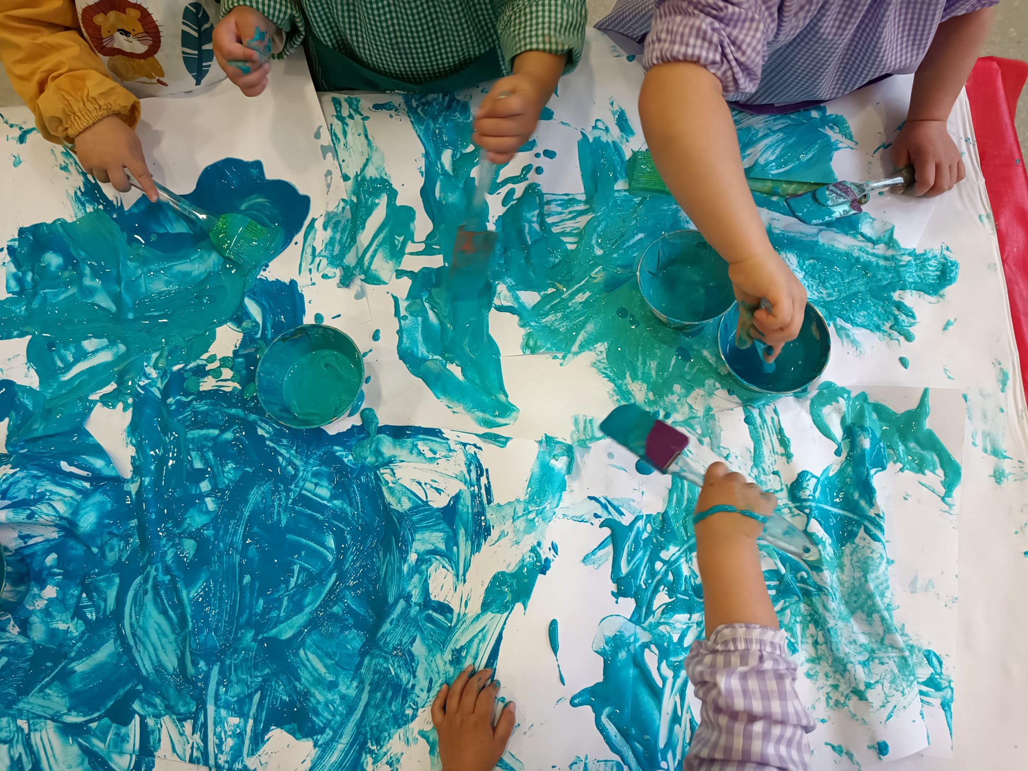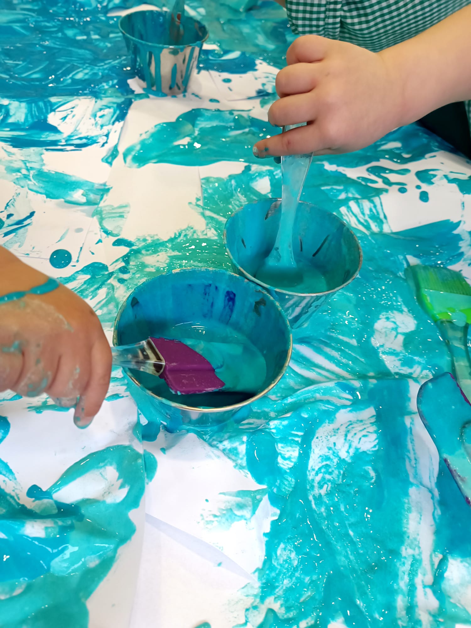 Propostes d’hivern a l’Etapa 0-3 anys! Explorem, manipulem, experimentem i pintem amb farina, aigua i colorant alimentari de colors freds. Propostes per estimular i potenciar la imaginació i la creativitat, la manipulació a través dels sentits per aconseguir un aprenentatge significatiu!!!