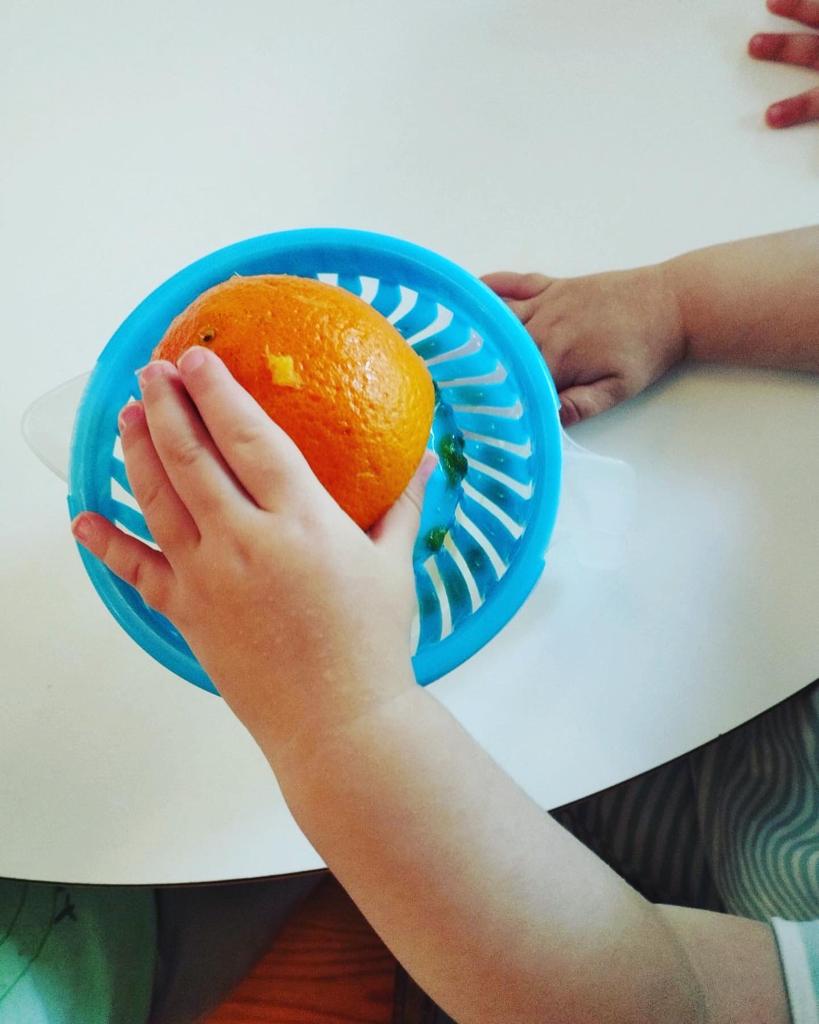 Els més petits dels Gallarets comencem la setmana de la cuina fent un suc de taronja… que ens hem begut per esmorzar i ens ha agradat molt!!!
