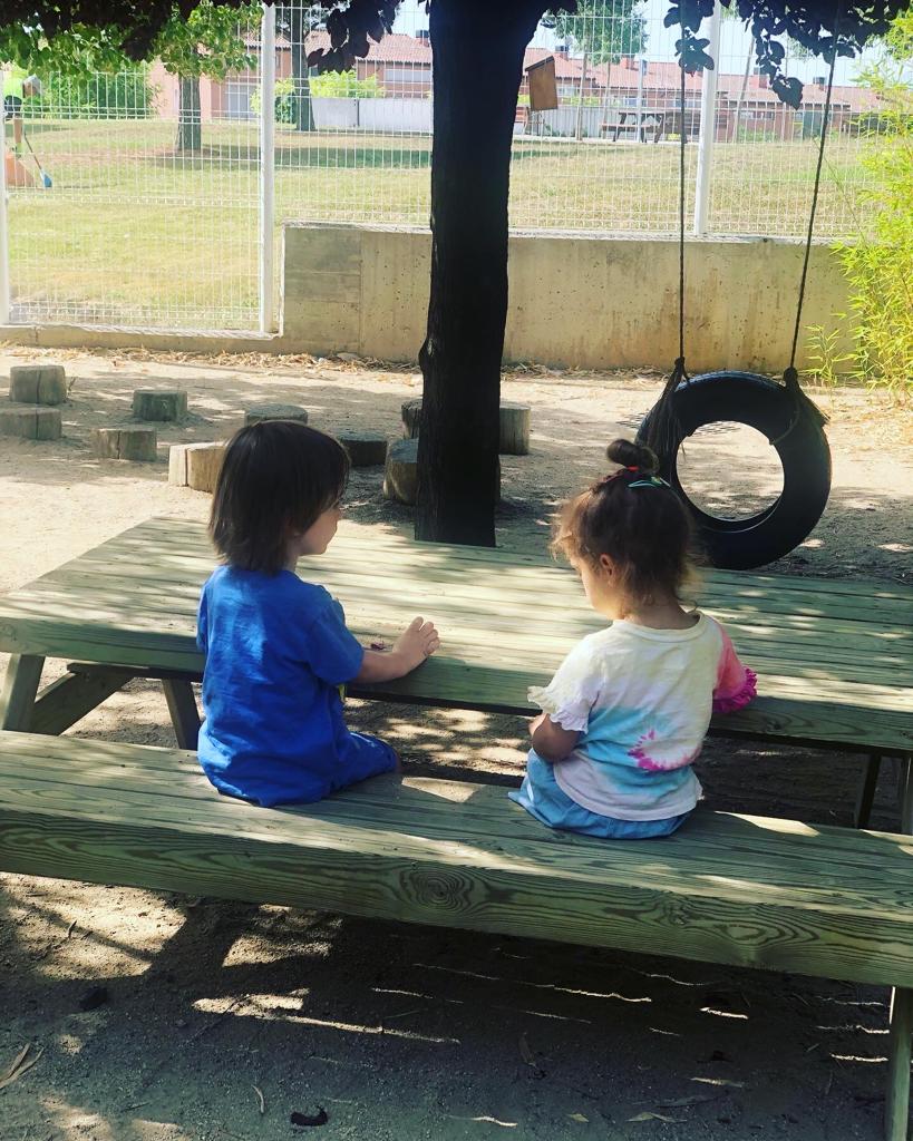 Avui els grans de la llar ja han pogut gaudir de la nova taula al jardí!!!