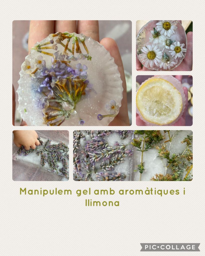 I molt d’hora sortim al jardí, quan el sol encara no apreta massa i encara sentim aquella frescor matinera… És aleshores quan aturem el joc lliure posant a l’abast dels infants aquets materials prèviament pensats, cuidats i collits a la llar. Avui els petits de l’escola han manipulat gel ple d’aromàtiques, llimona i mores❄️