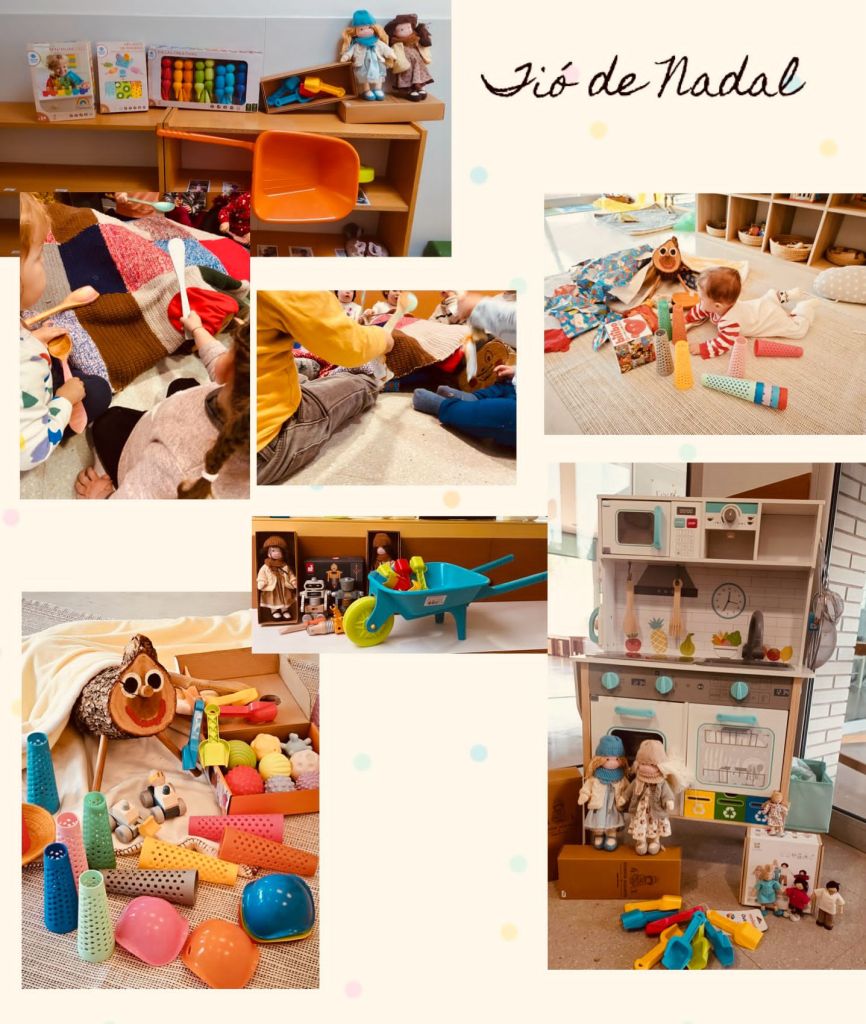 I avui hem omplert l’entrada de la llar d’infants, de regals, de cops de bastó, de trossets de paper d’embolicar i de música! Molta música! I és que aquest Tió ha rebut tant d’amor i tan menjar per part de tots els petits de l’escola… que ha cagat moltíssim!