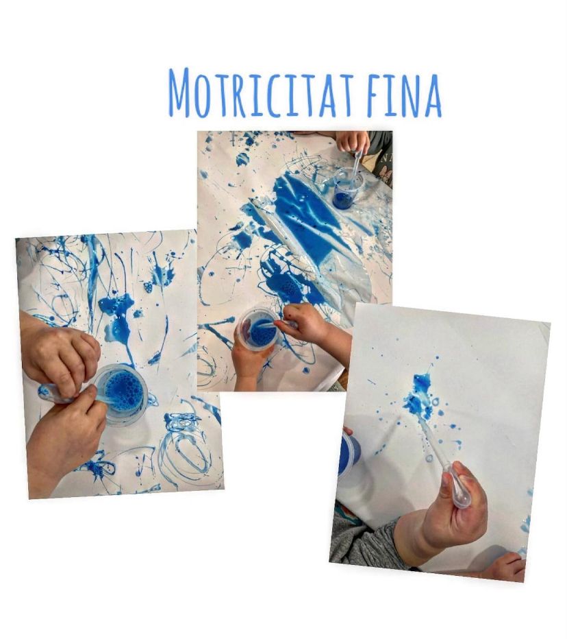 Una pipeta, aigua amb colorant, paper d’embalar i les petites manetes dels infants de I2, va fer sorgir un mural preciós i espontani.