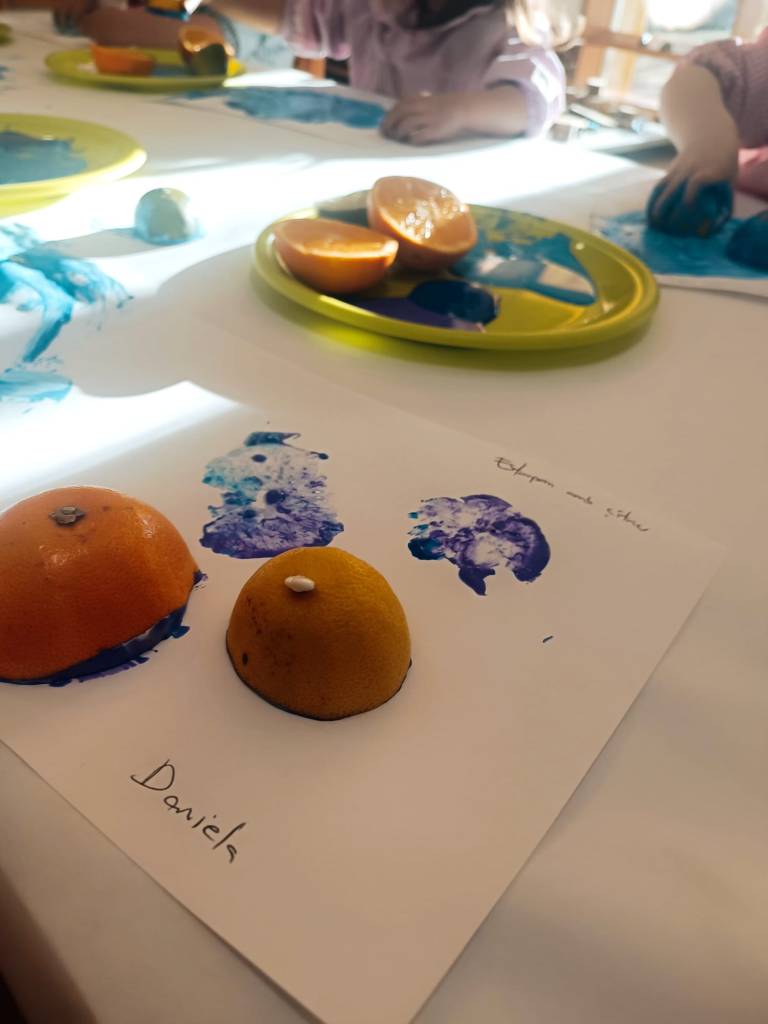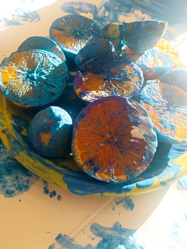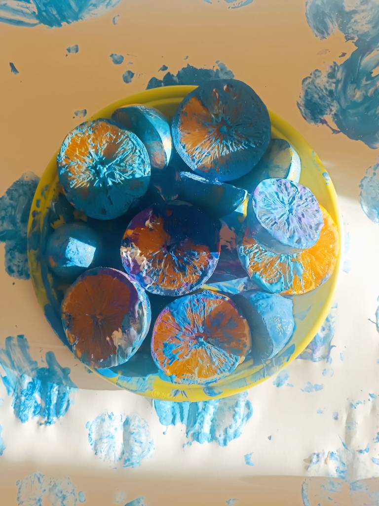ESTAMPACIÓ AMB CÍTRICS I PINTURA AMB COLORS D’HIVERN 🩵💙💜🤍 Aquesta setmana els grans dels Gallarets, explorem, manipulem i descobrim amb cítrics i pintura. 30 gener, 2025 by Els Gallarets Categories: Activitats