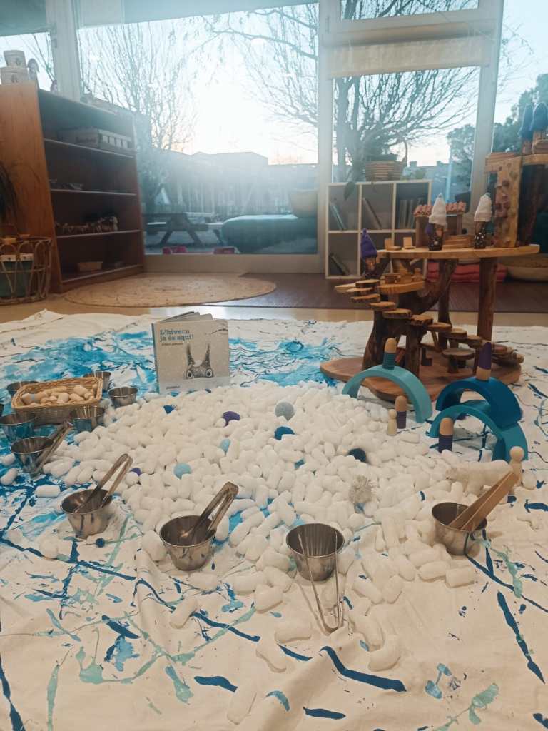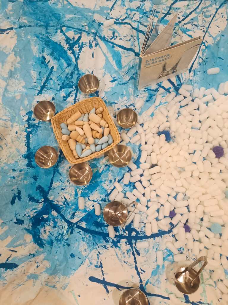 Les entrades a I2 moltes vegades estàn plenes d’energia, van arribant infants a les aules, però alhora també hem d’atendre a les famílies… Preparar una proposta diferent, permet que els infants tinguin interès i sorpresa per allò que veuen, posant l’atenció en aquest espai i materials. Això ens permet aconseguir més calma a l’aula durant aquesta estona d’entrada als matins.