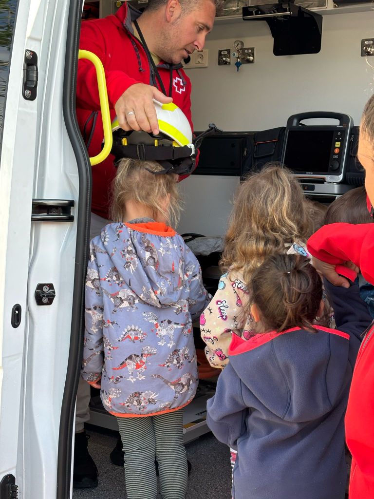 Començem el mes de les famílies amb una visita molt especial… Una ambulància als Gallarets! I es que la mama i el papa del Leo ens han deixat pujar-hi, posar-nos armilles i cascs i fins i tot hem escoltat les sirenes!