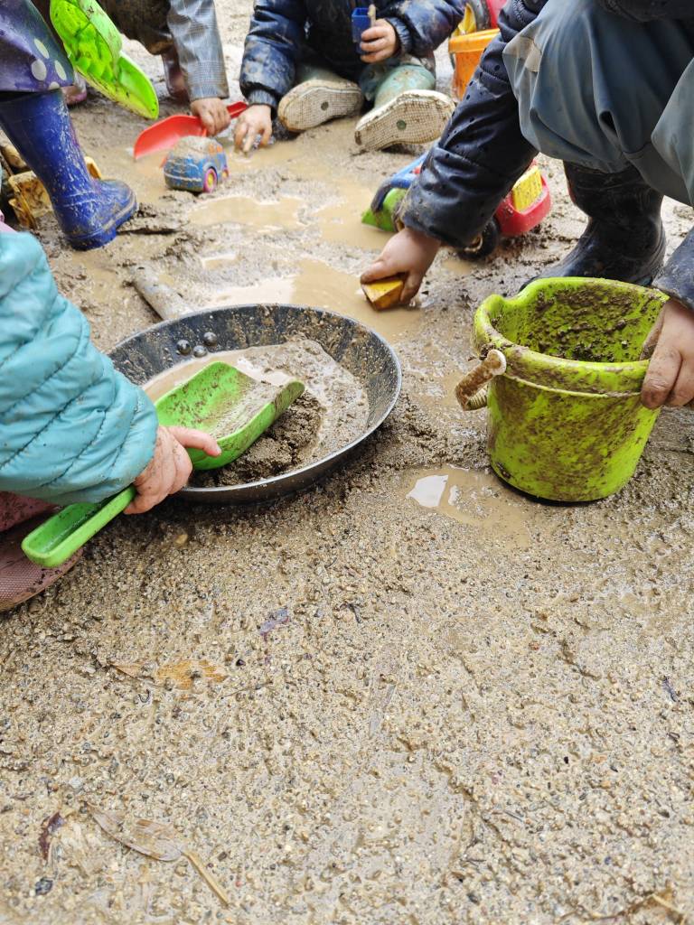 Bassals, fang, botes, joc lliure, gaudir dels espais exteriors sempre! Som disfrutons! Ens agrada la pluja i embrutar-nos les mans!