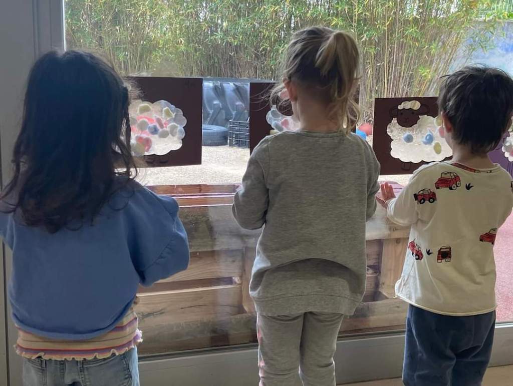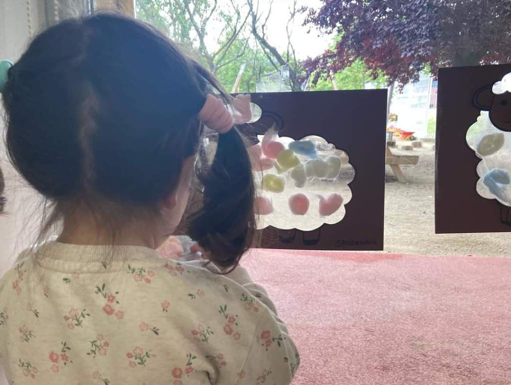 I mentre a I1 gaudien d’un espectacle a càrrec de les educadores de dinamització amb titelles, a I2 han vingut 3 mamis estupendes a fer-nos participar en una activitat molt bonica! Gràcies a la mare de l’Alèxia (roures) Ibai (alzines) i Ernest (ametllers) els hi ha encantat vestir a aquestes ovelletes!