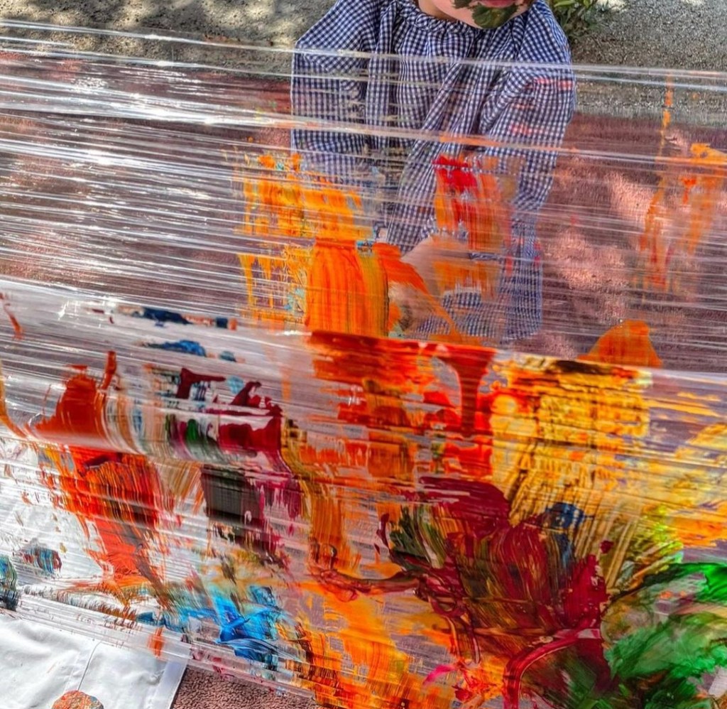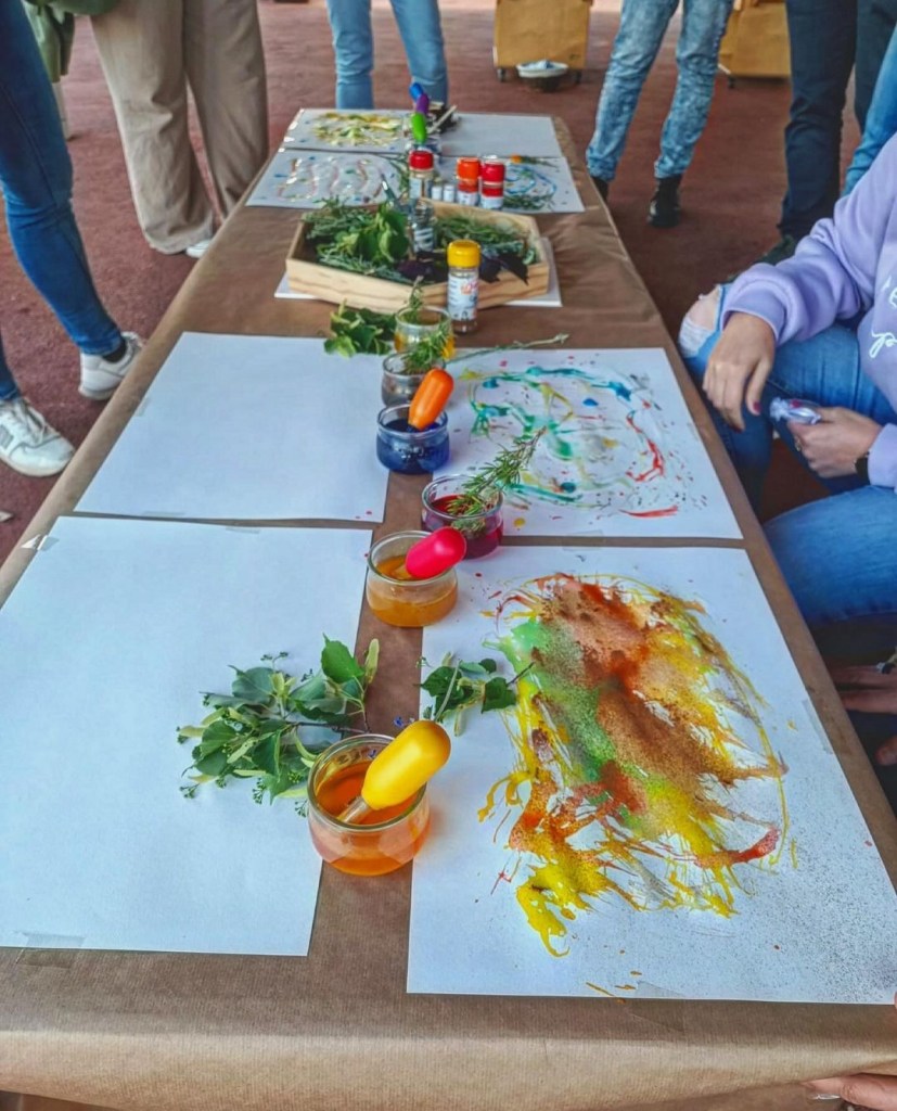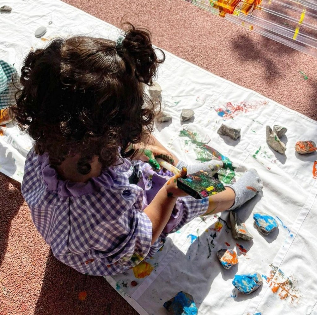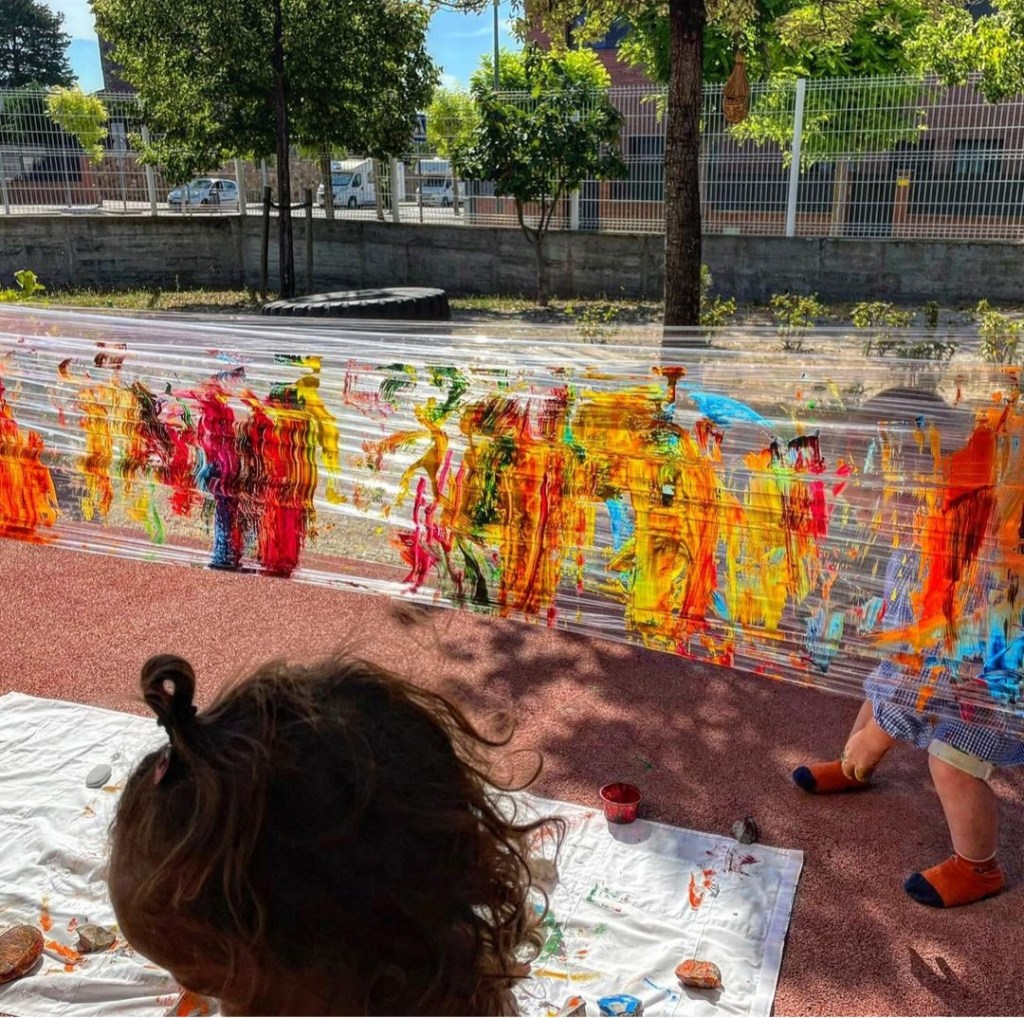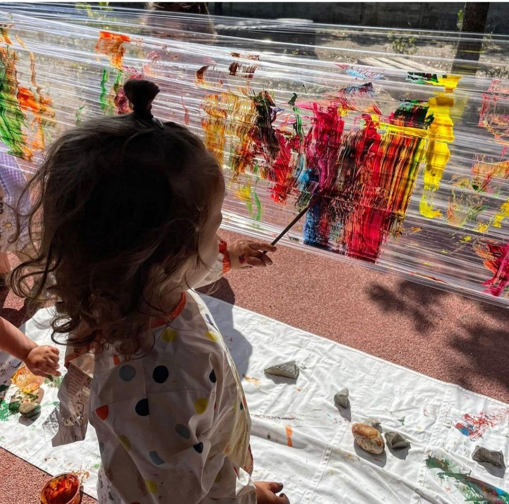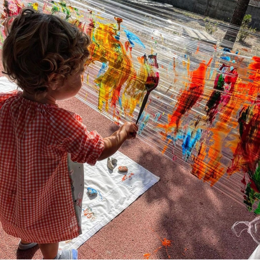 Avui hem desenvolupat l’art en tots els sentits! Aquarel·les, pintura, pedres, teles, paper film, esprais… i un jardí preciós on gaudir-ho és una sort. Quina meravellaaaaaa!!!!