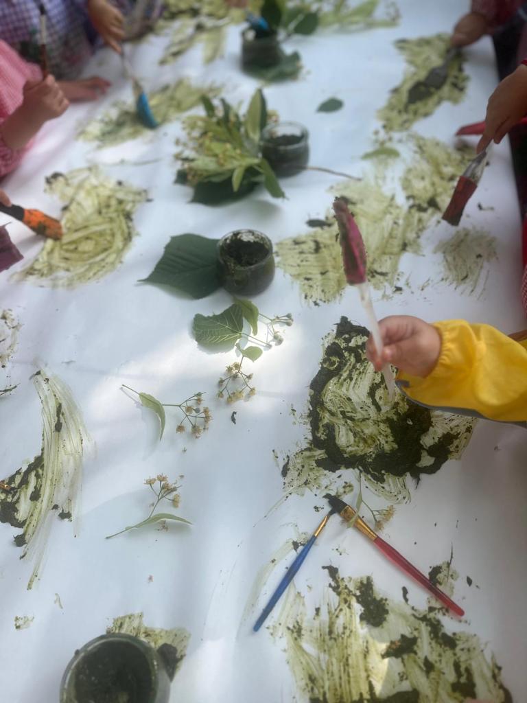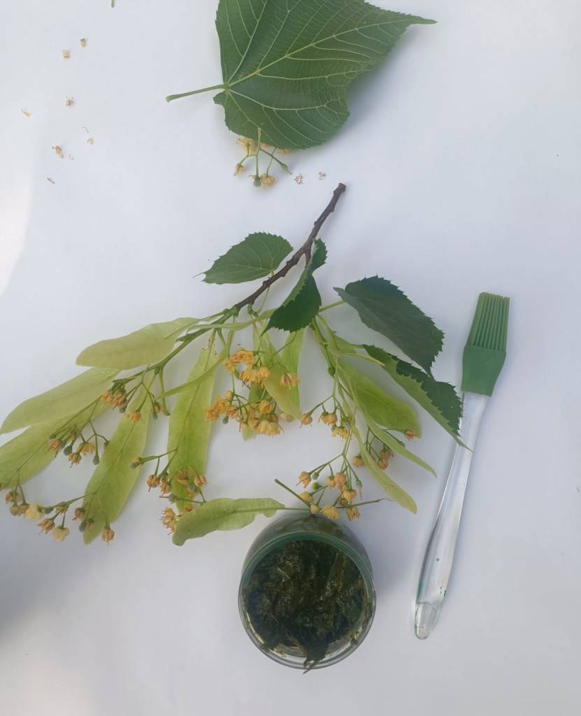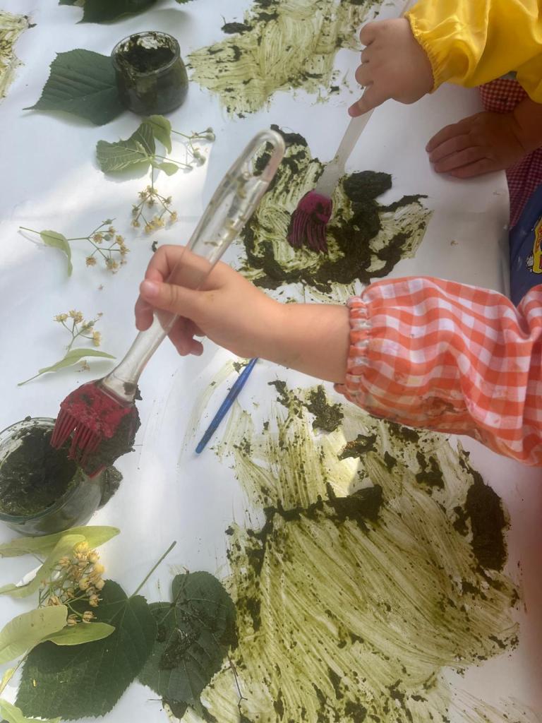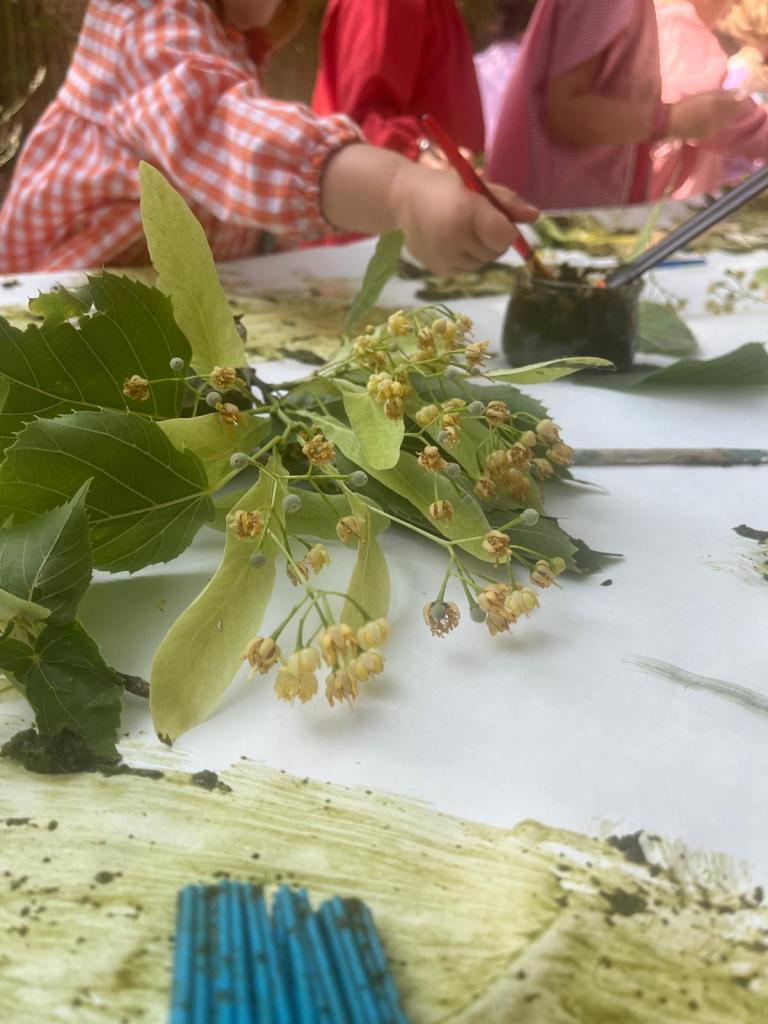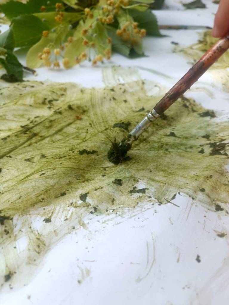 Creem pigment natural amb fulles dels ti•lers del jardí de la nostra escola.