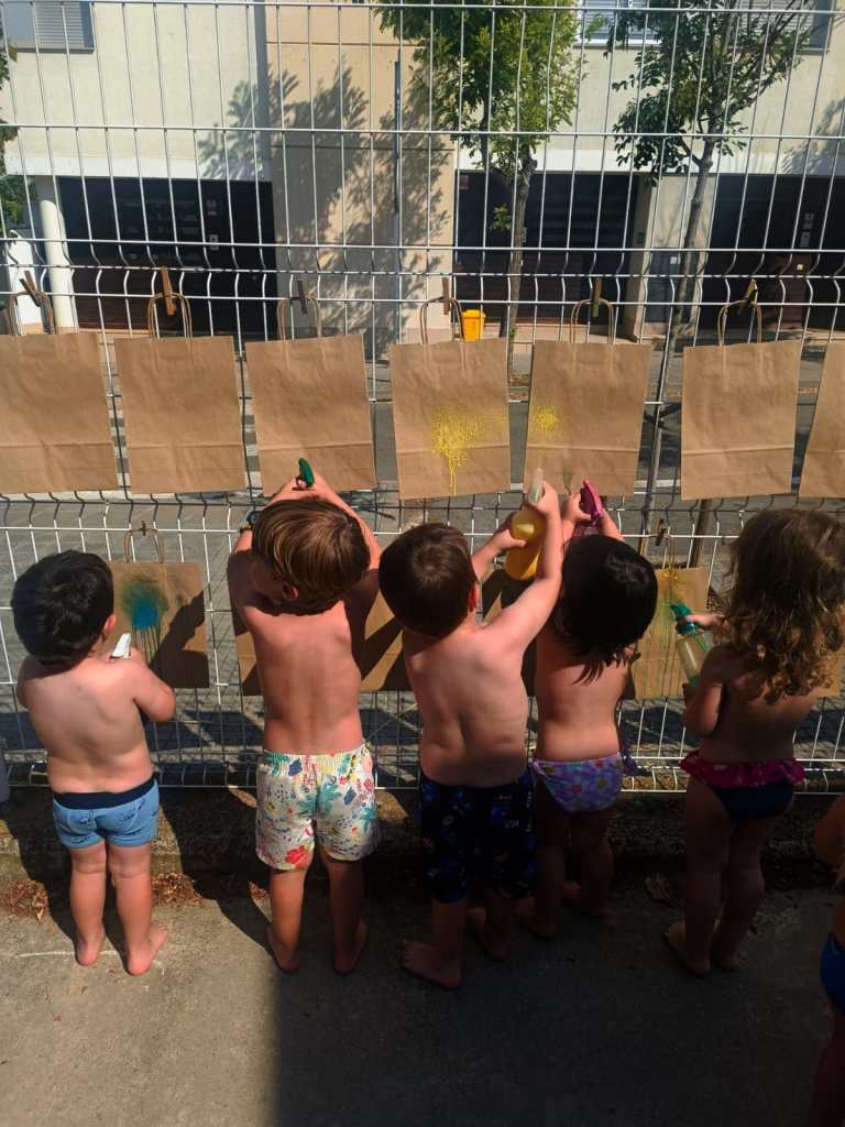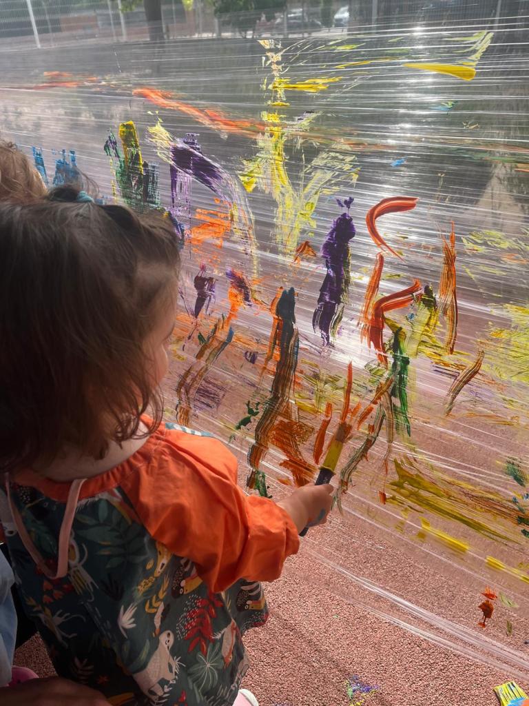 Avui els infants d’I1 han viscut un matí creatiu i ple de colors. Els petits artistes exploren la pintura en vertical utilitzant diferents tècniques i eines: pinzells, esponges, rodets… i fins i tot amb les seves manetes!