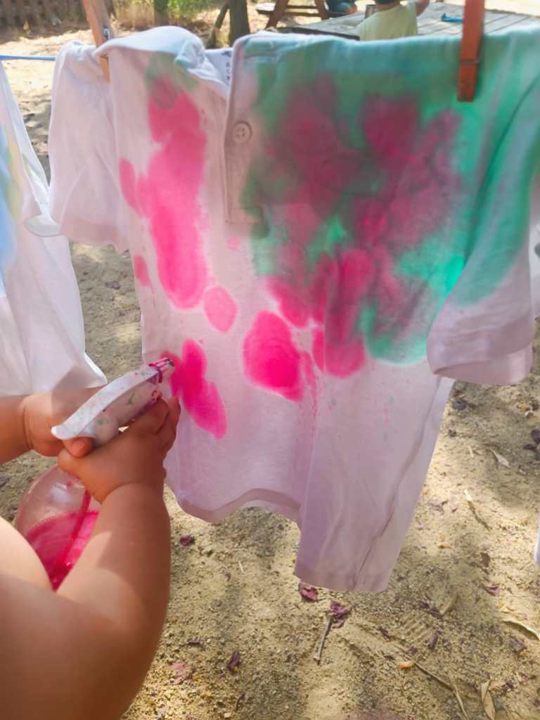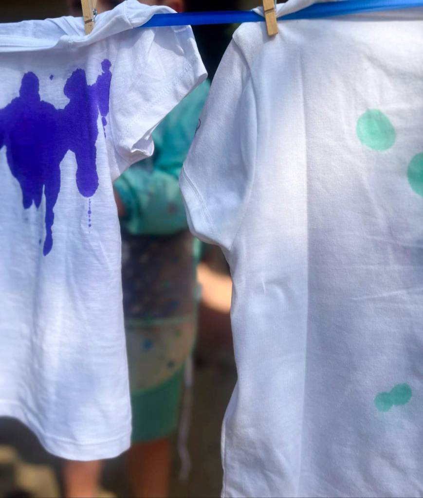 Pintem samarretes utilitzant la tècnica de l’esprai amb aigua i pintura de roba. Han quedat unes samarretes molt creatives!