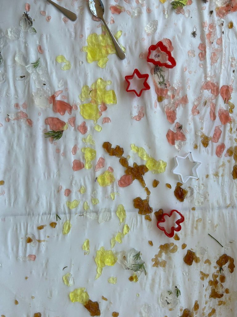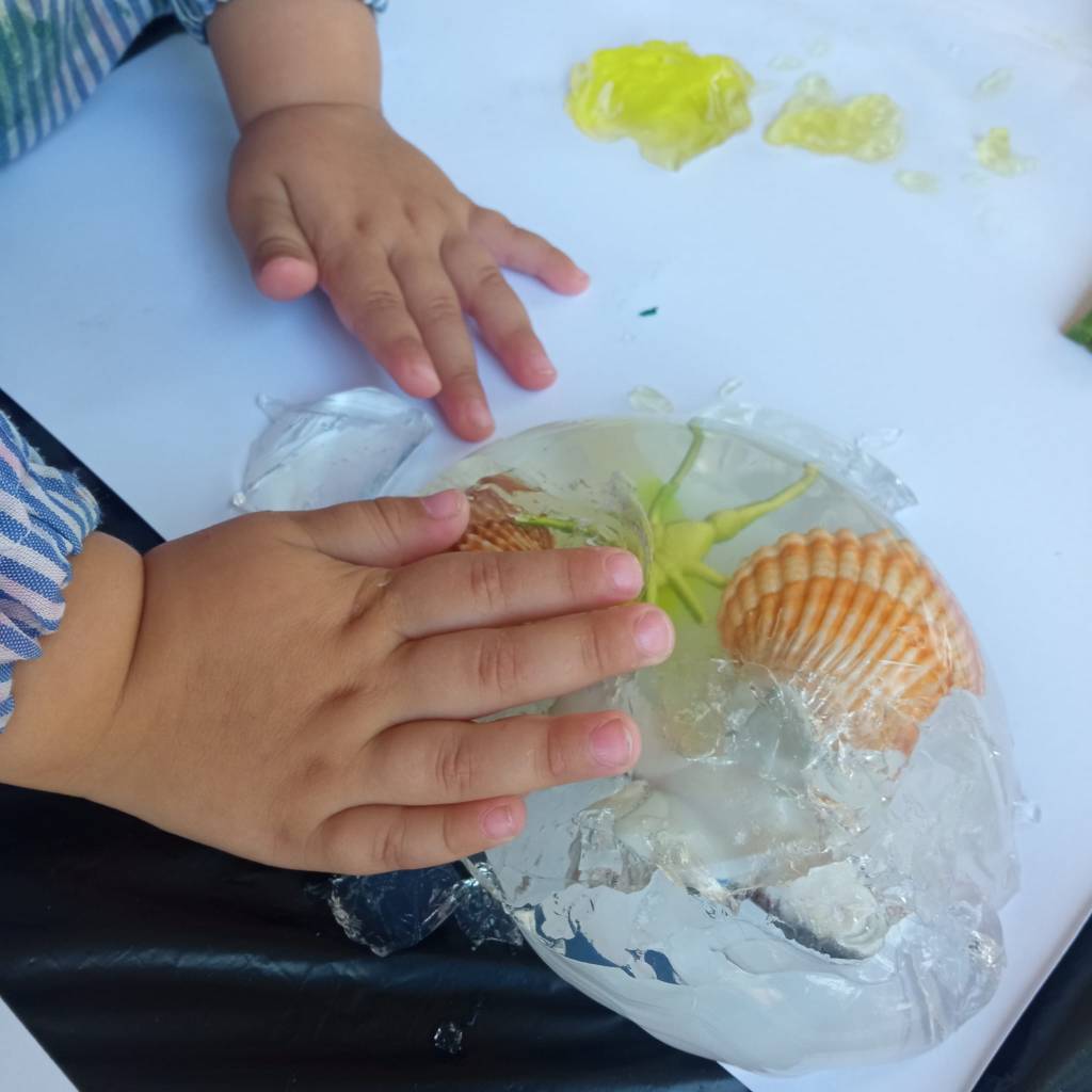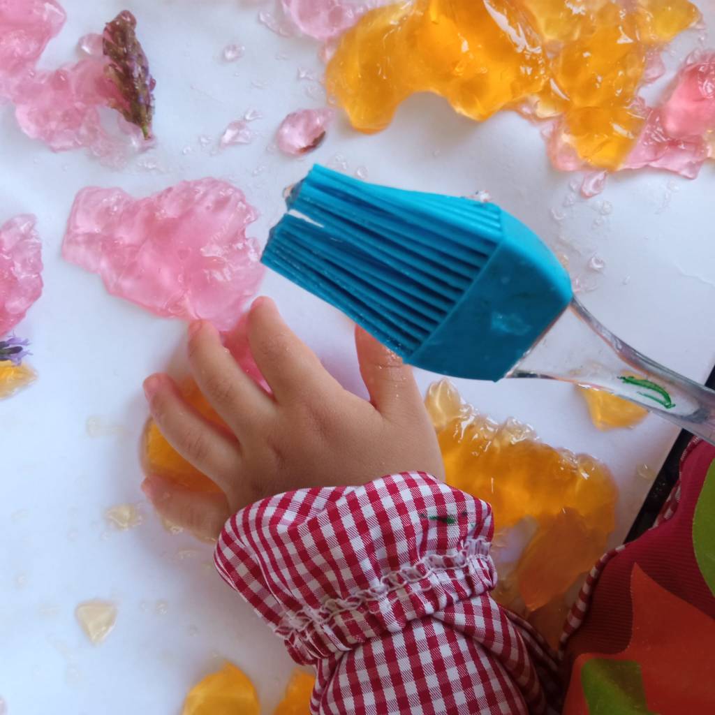 Els infants d’I1 han gaudit d’una proposta sensorial plena de colors, textures i aromes. Manipulant gelatina neutra amb herbes aromàtiques i gelatina de sabors.