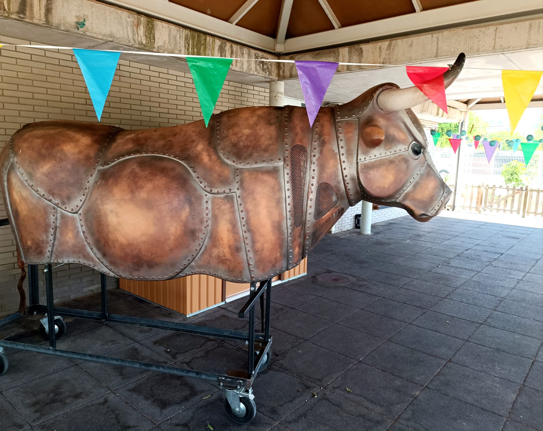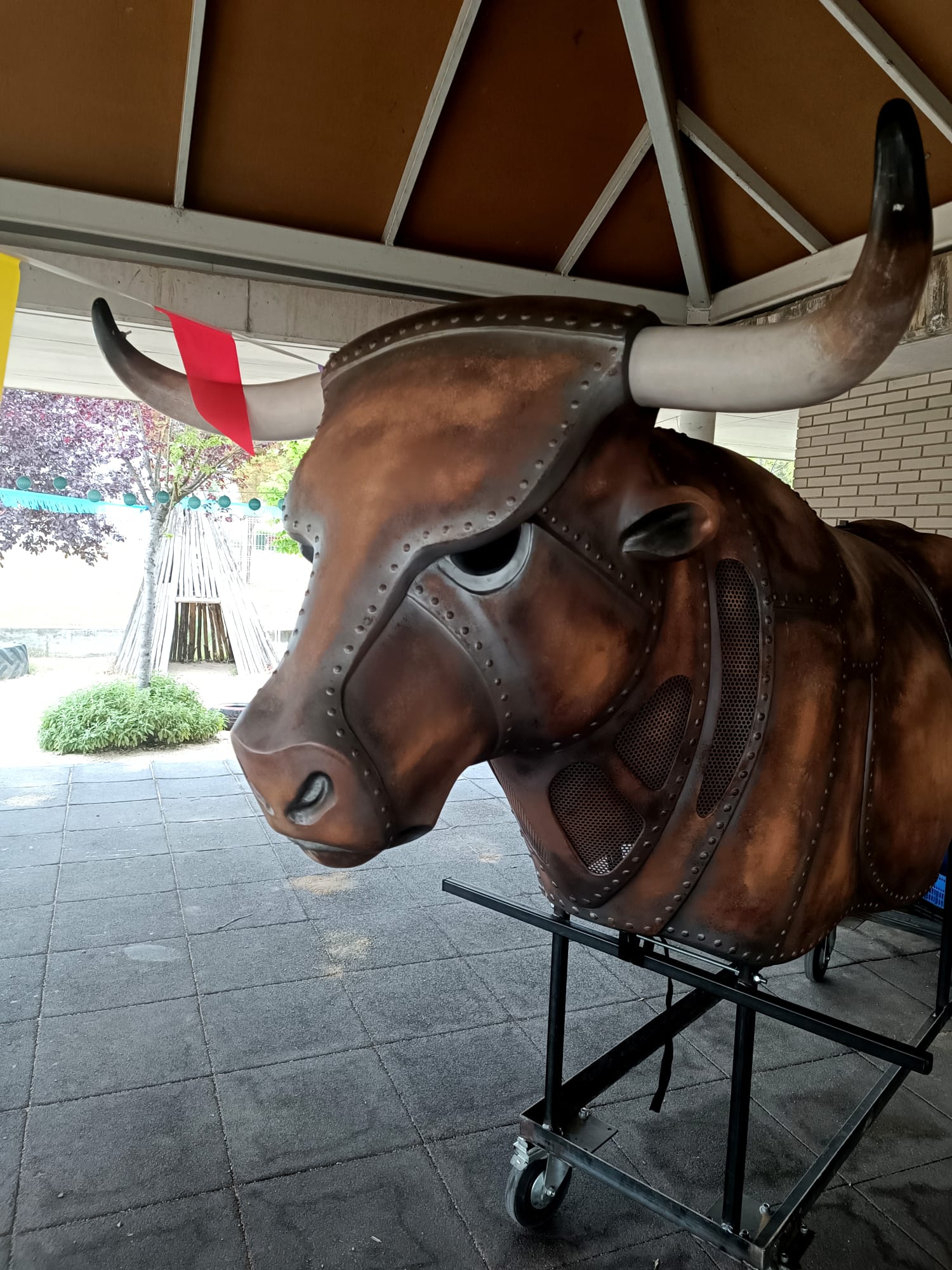 Divendres al matí quan vam arribar a l’escola vam trobat un bou al porxo!!! Quina sorpresa…. Moltes gràcies als @bousdefocsantpedor
