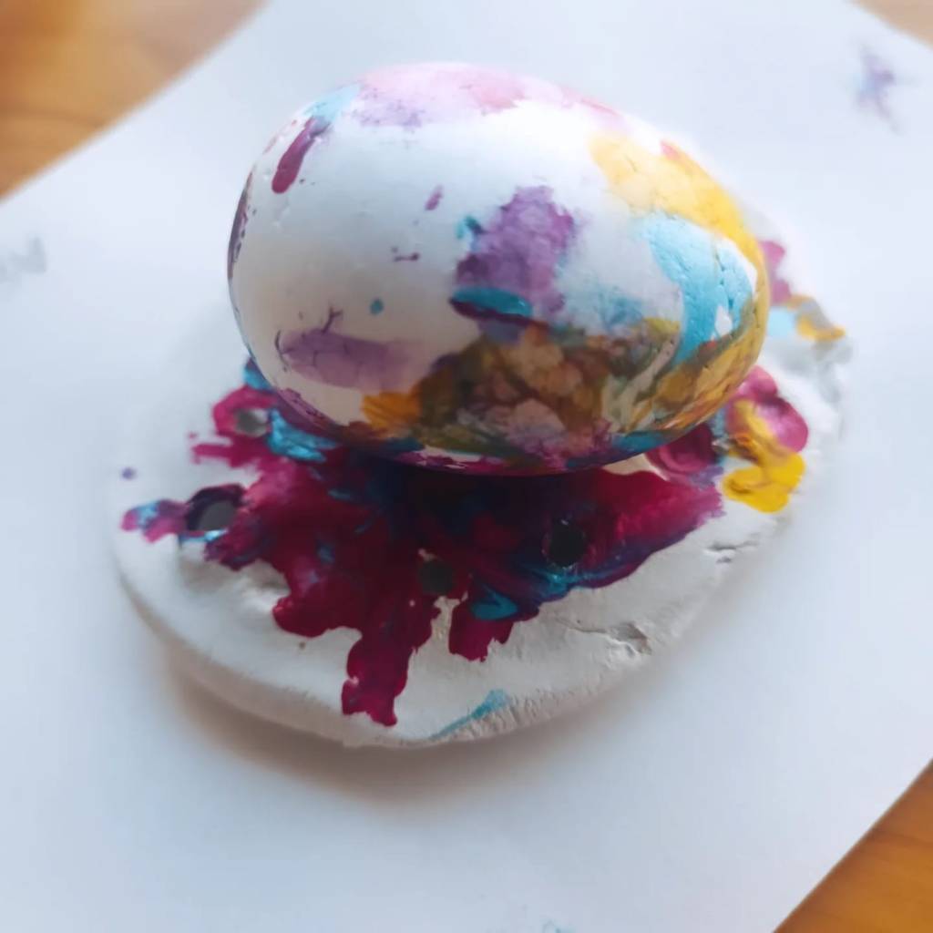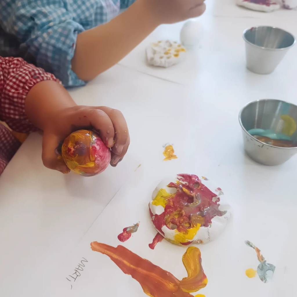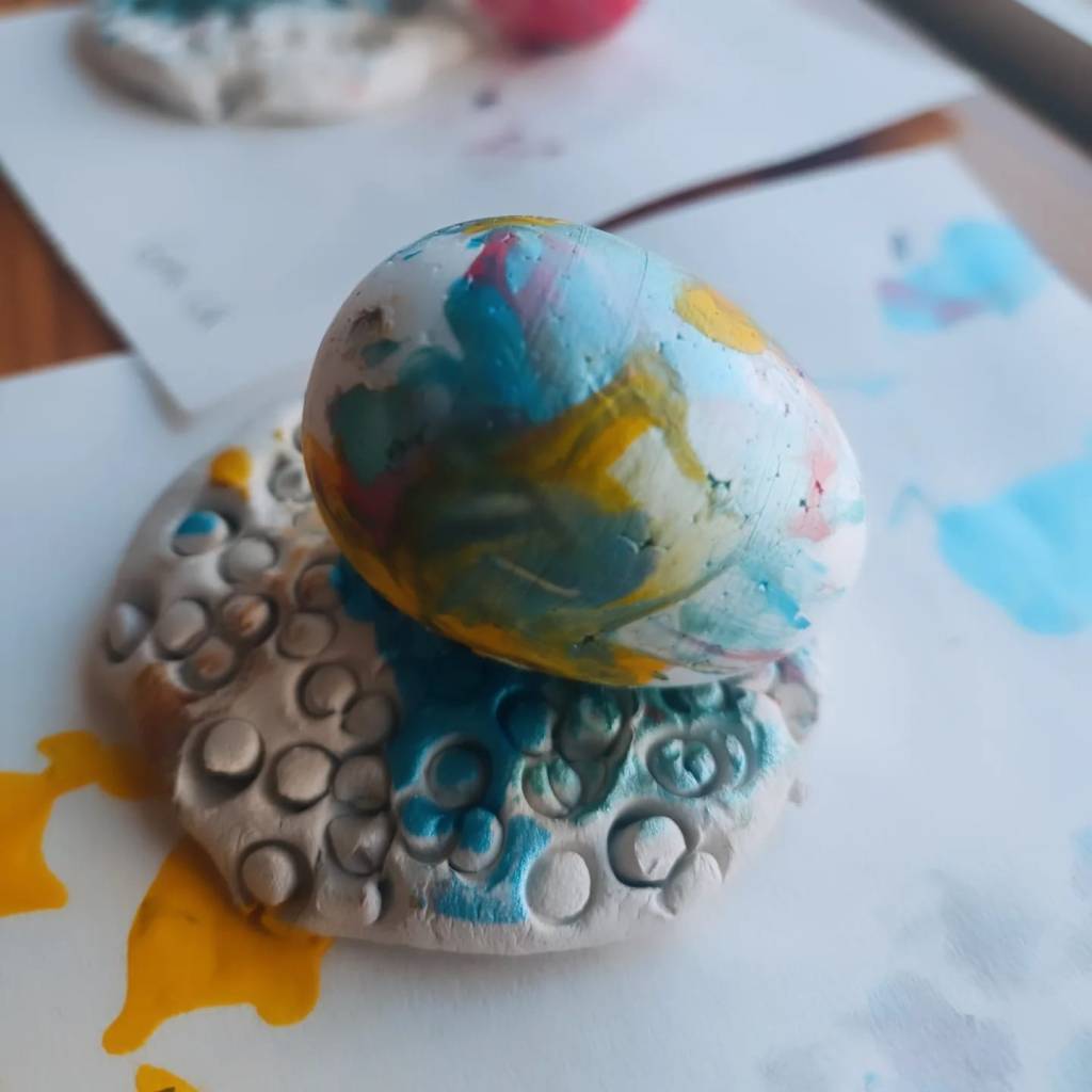 Avui hem gaudit d’una activitat ben divertida: hem pintat ous de Pasqua i figures de pasta de fang blanc!
