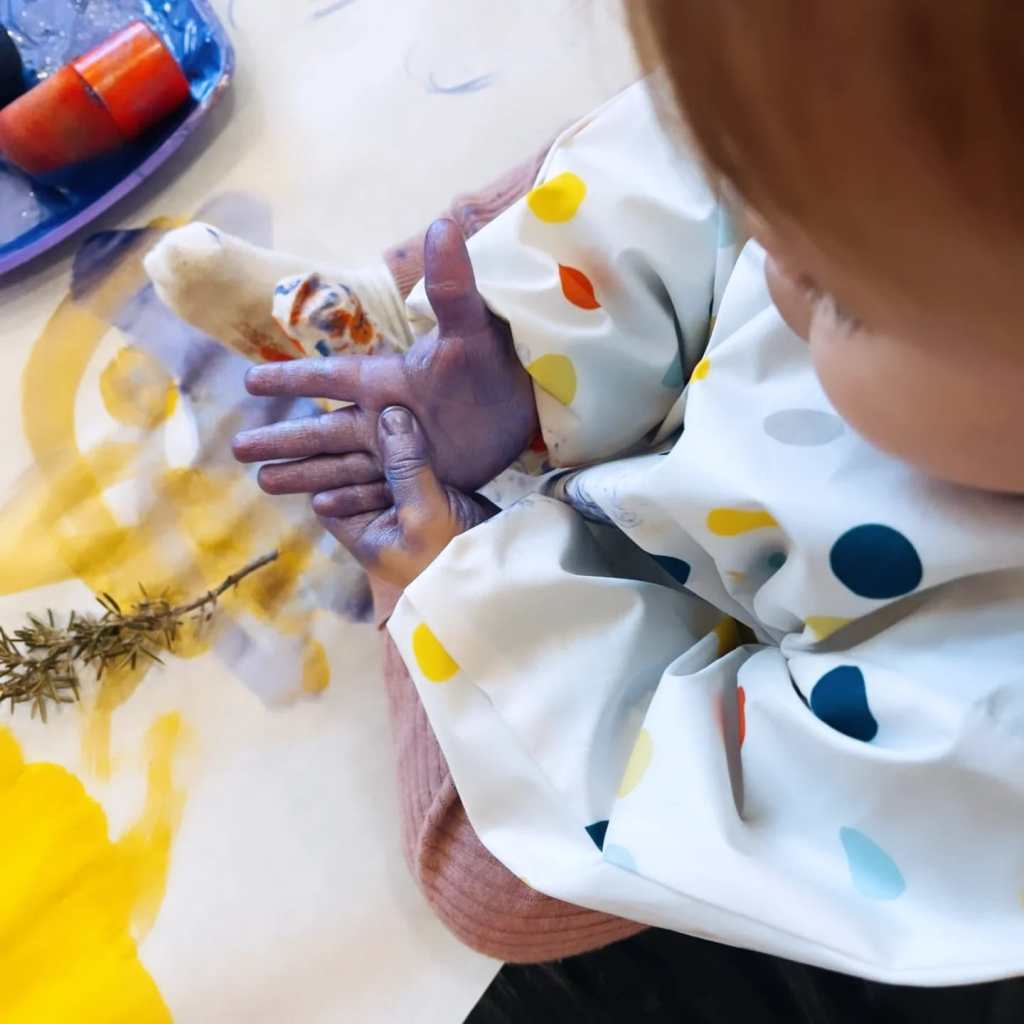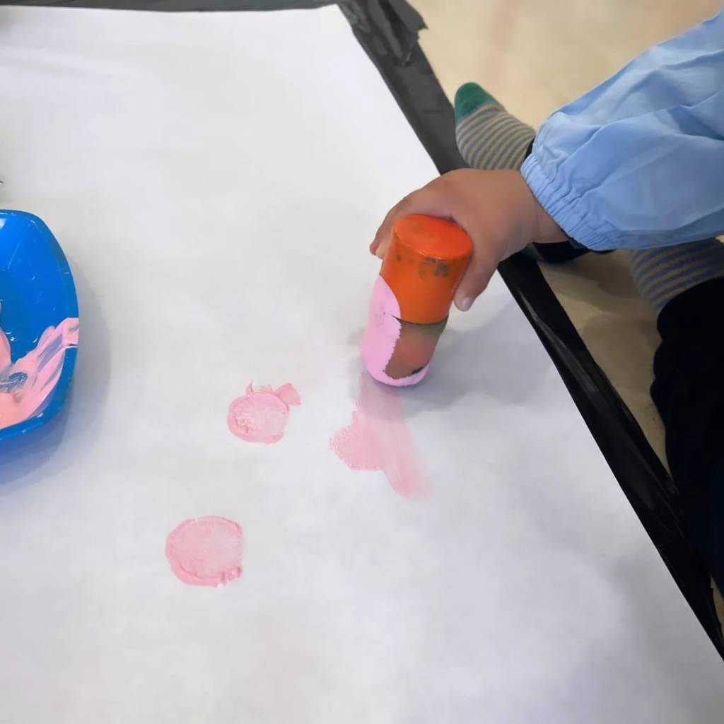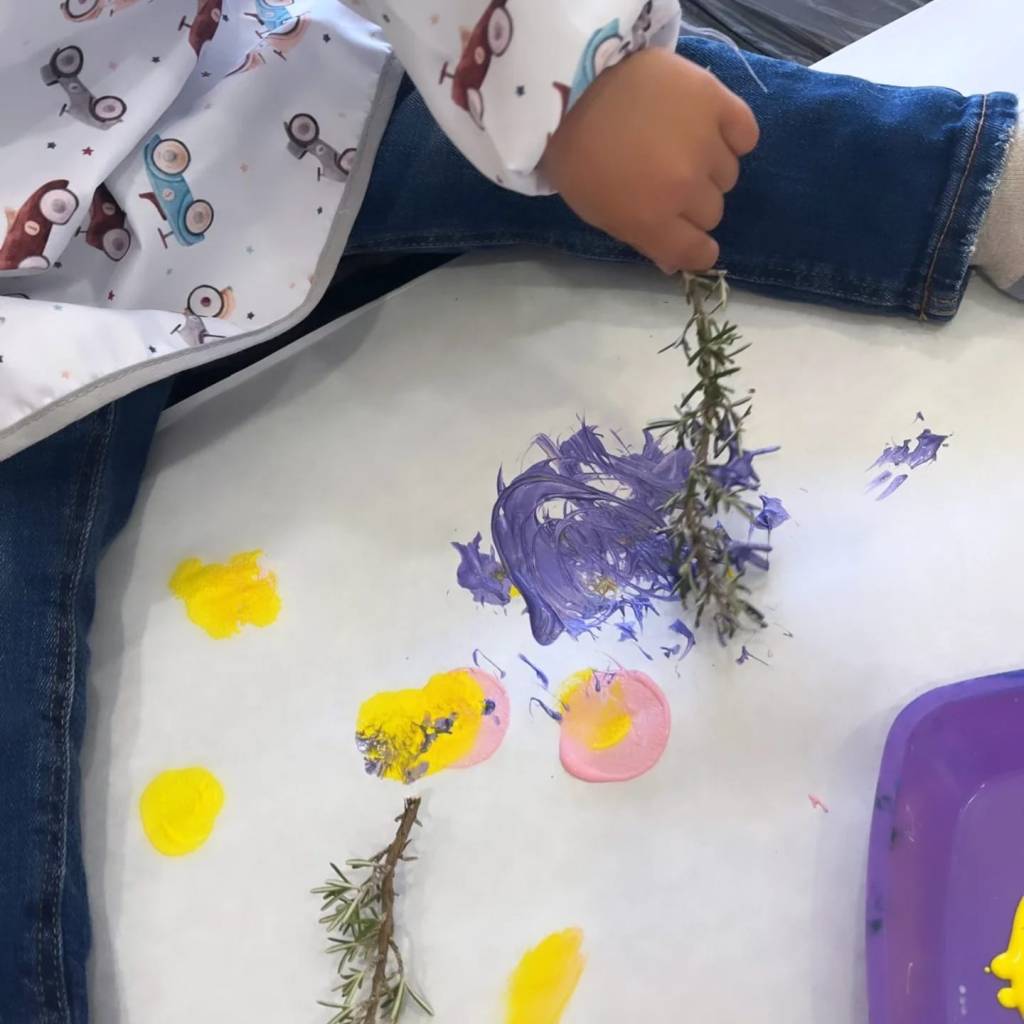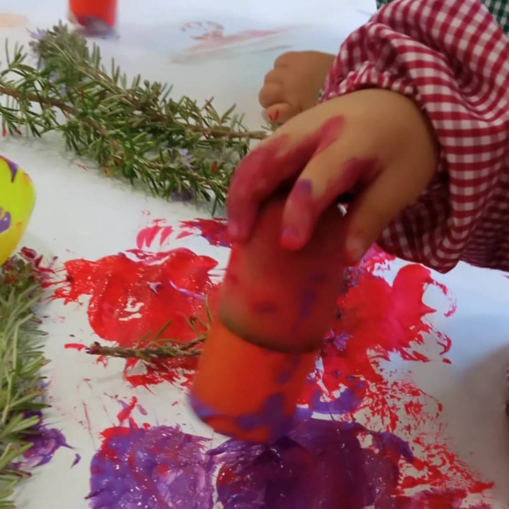Cada infant, amb el seu toc personal, han contribuït a crear petites obres d’art. Ens ho hem passat molt bé experimentant amb les pintures i compartint aquesta proposta.