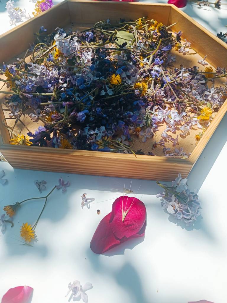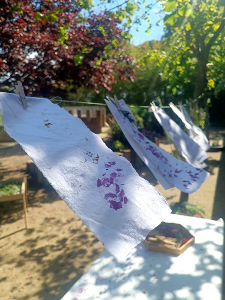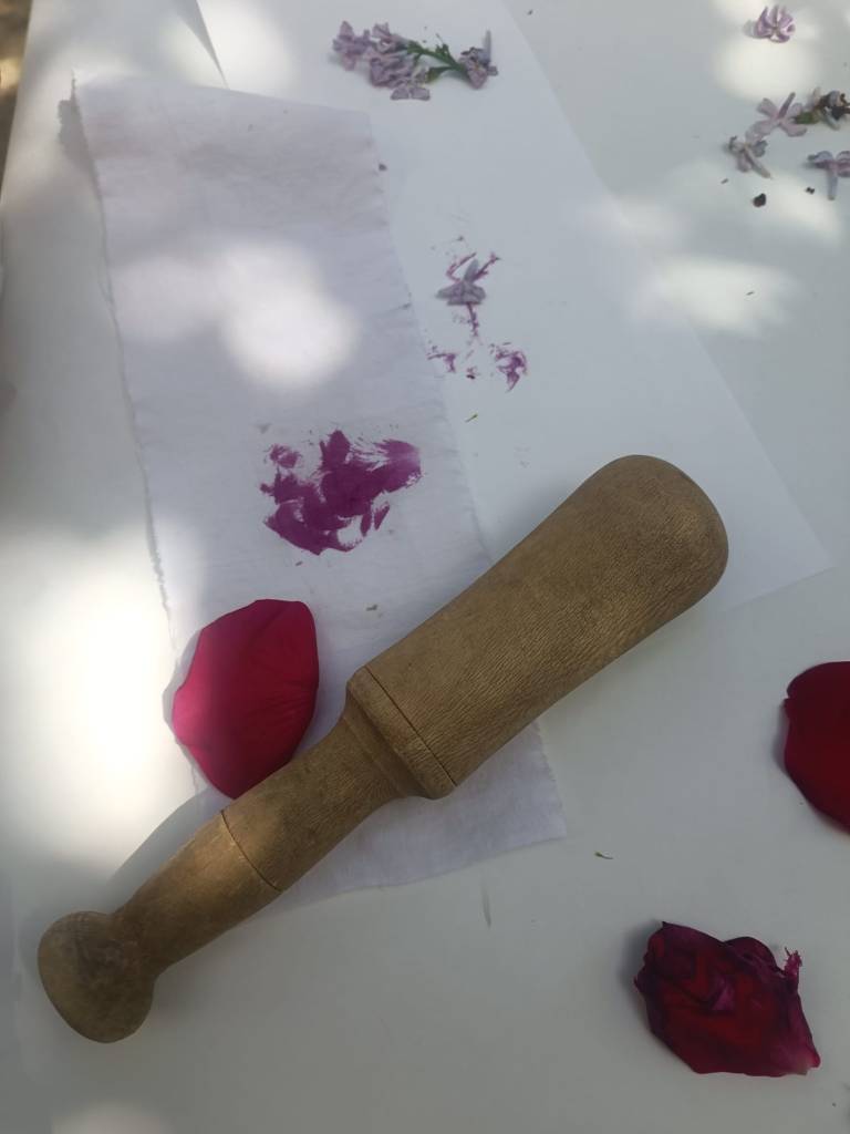 Reciclem pètals de roses de Sant Jordi i collim juntament amb les famílies flors silvestres per estampar sobre tela.