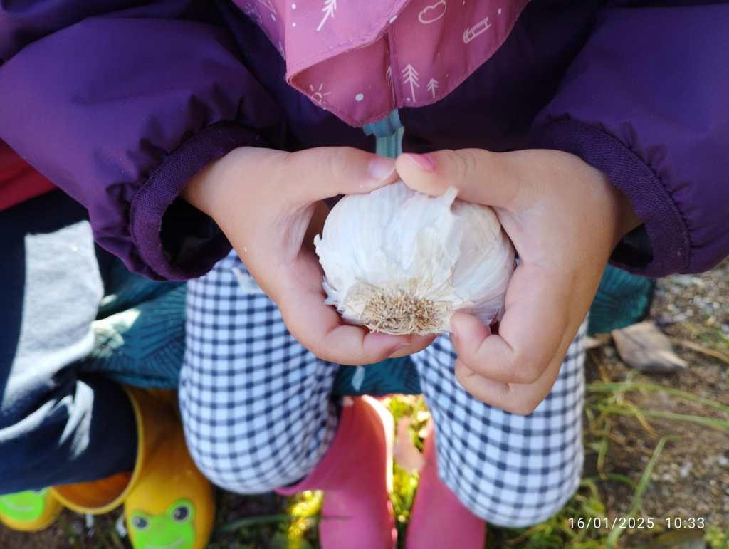 Hem guardat els alls en un lloc fosc i els plantarem el proper mes.