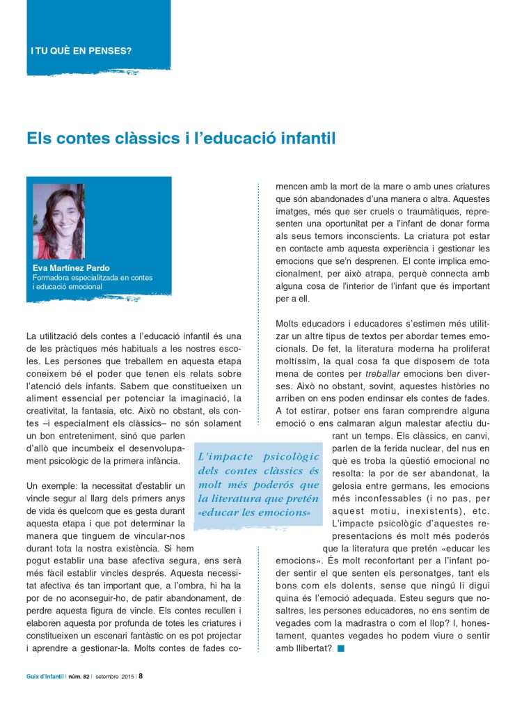 ELS CONTES CLÀSSICS I L’EDUCACIÓ INFANTIL Altres articles interessants sobre aquest tema: Com triar un conte